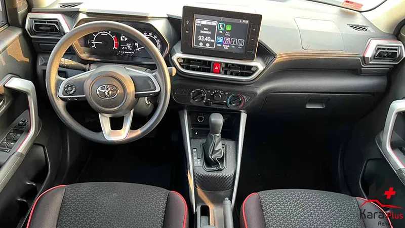 کرایه ماشین تویوتا رایز در دبی به عنوان یکی از خودروهای کراساوور کوچک و محبوب، به فناوریهای پیشرفته و مدرن داخل کابین مجهز شده است. یکی از مهمترین فناوریهای داخل کابین تویوتا رایز ۲۰۲۲ ، سیستم اطلاعات و سرگرمی مجهز به صفحه نمایش لمسی است. این سیستم با پشتیبانی از Apple CarPlay و Android Auto به راننده و سرنشینان امکان میدهد تا به راحتی گوشیهای هوشمند خود را متصل کنند و به موسیقی، تماسها، پیامها و نقشههای ناوبری دسترسی داشته باشند. امکانات رفاهی دیگر: